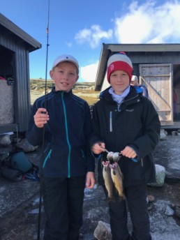 Det er tidligere i år satt ut fisk i Bergetjørn, så lærere og elever var spent på om det ble fisk. Og det ble det, både på stang og med garn.